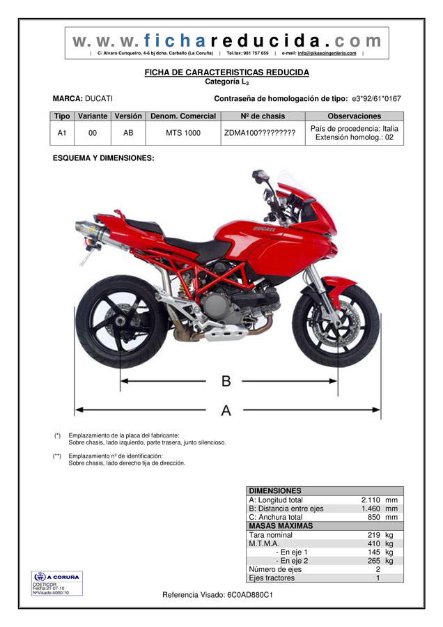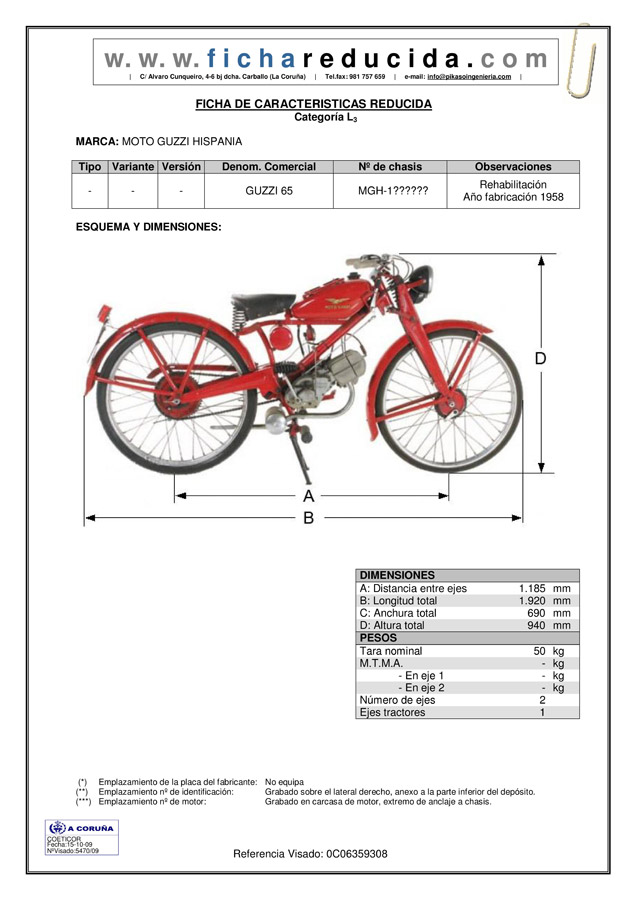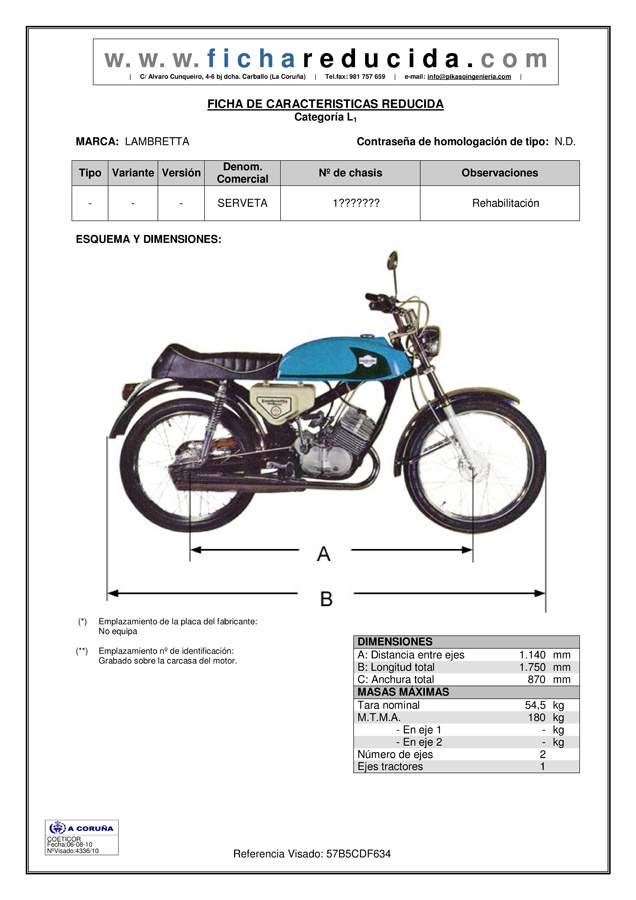 La diferencia entre la ficha reducida y el CoC estriba en que la primera está firmada por un ingeniero colegiado y el segundo está emitido directamente por el fabricante. Cualquiera de las dos opciones es válida para la matriculación.